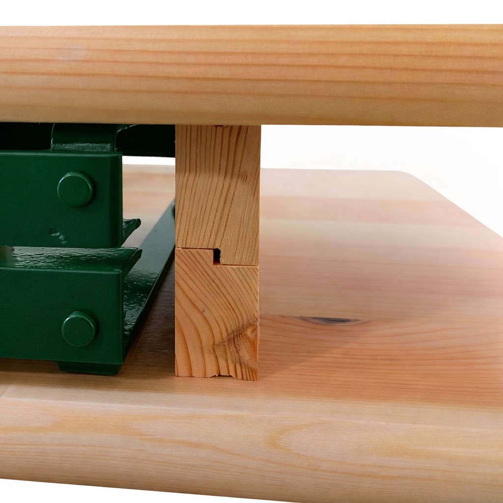 - "Ukrycie" śrub mocujących stelaże do blatów ławek/stołów (powierzchnia stołów i ławek bez widocznych główek śrub),