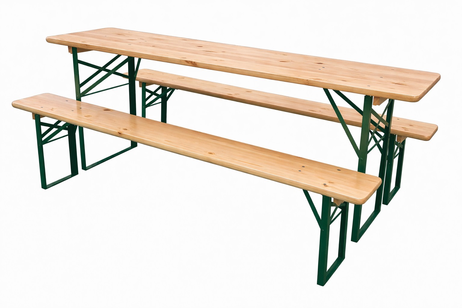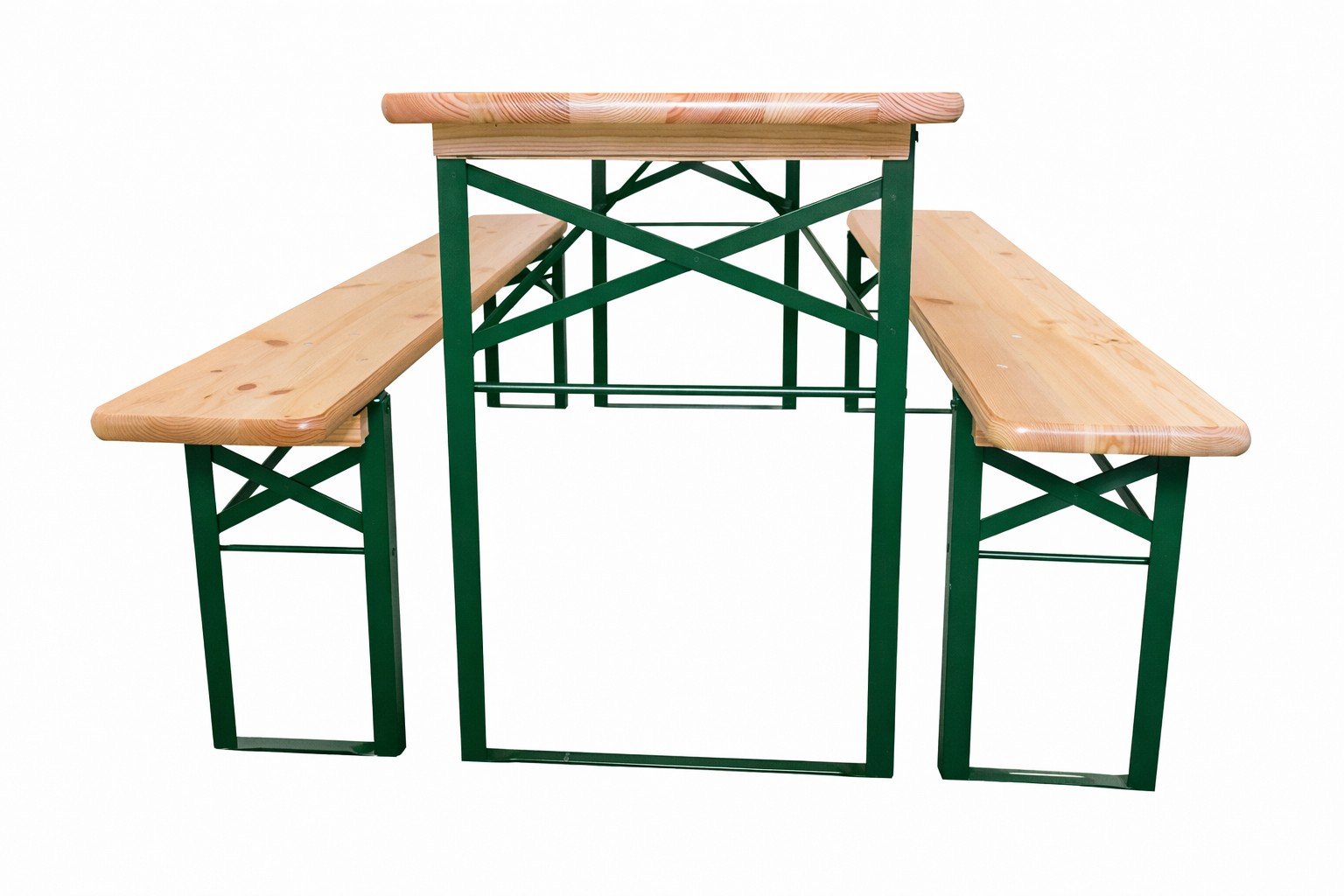 Komplety piwne Bawaria 01 cechuje niezwykła funkcjonalność dzięki możliwości całkowitego złożenia metalowych nóg stołu i ławek. Ułatwia to przechowywanie mebli ogrodowych poza sezonem.